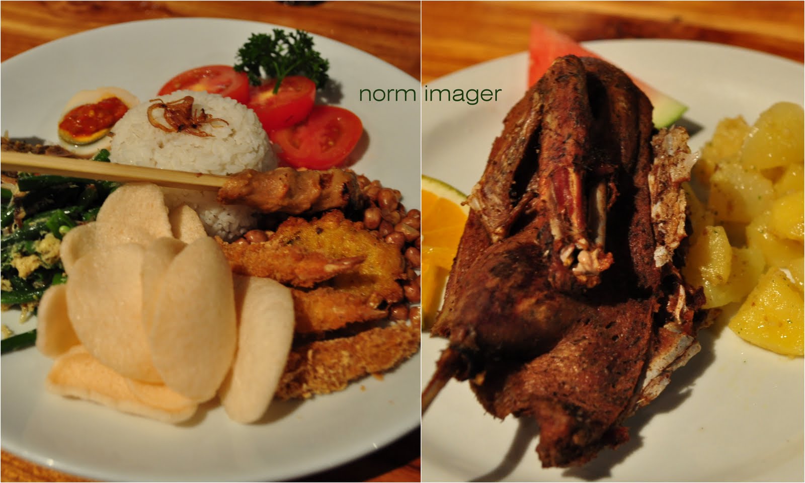We back to Ubud for dinner, at Bebek Bengil, or Dirty Duck in english.... we order a set of Bebek Bengil, and nasi campur... nice taste to try... from their menu, you can read about story of this Dirty Duck....